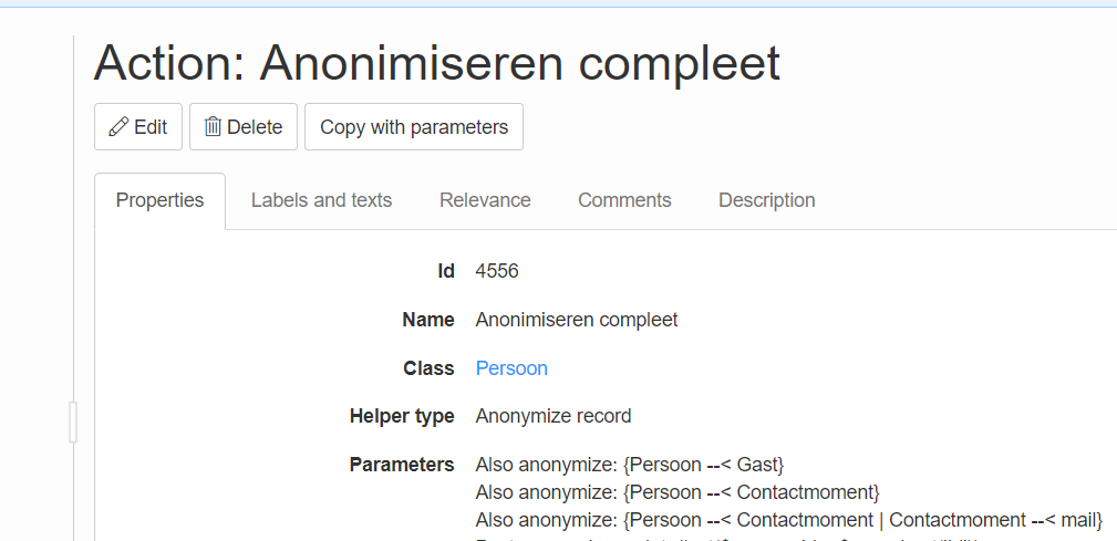 - Create the action to anonymize the (connected) records