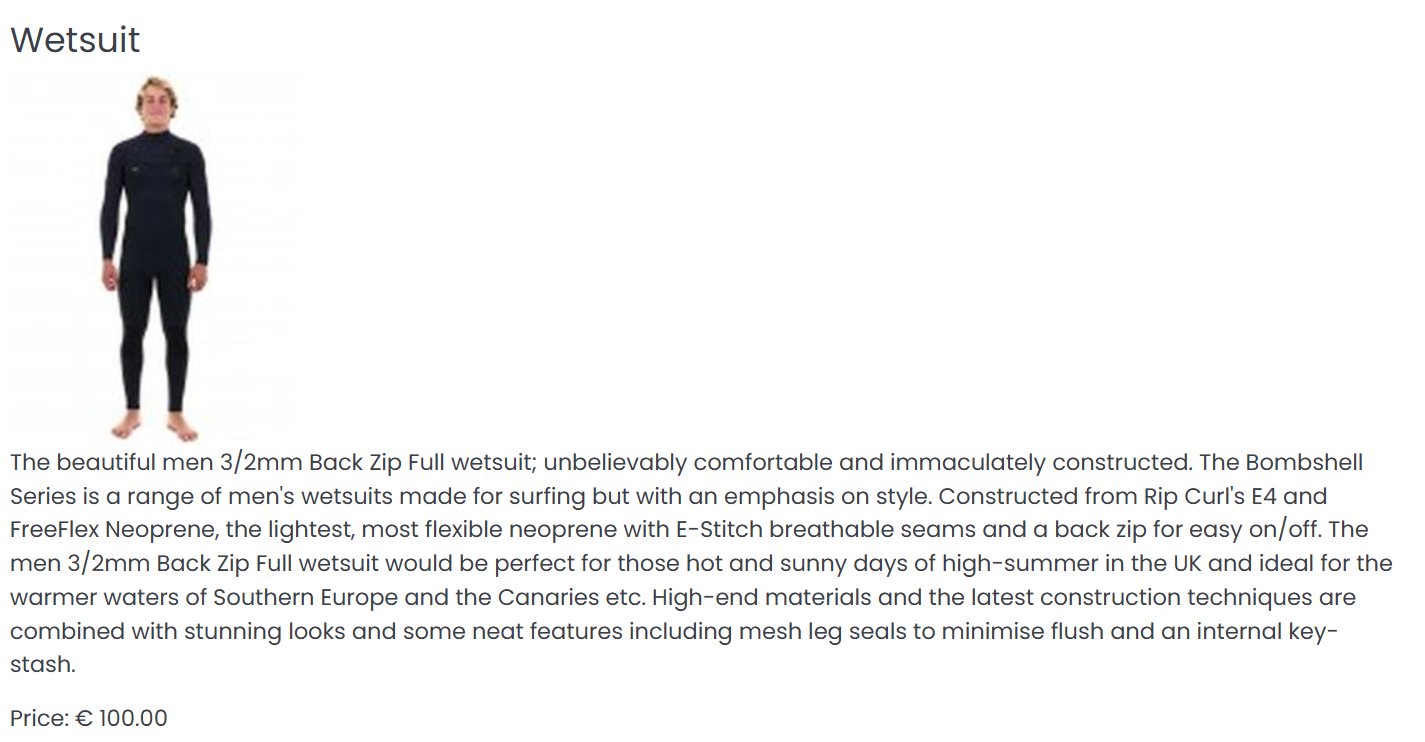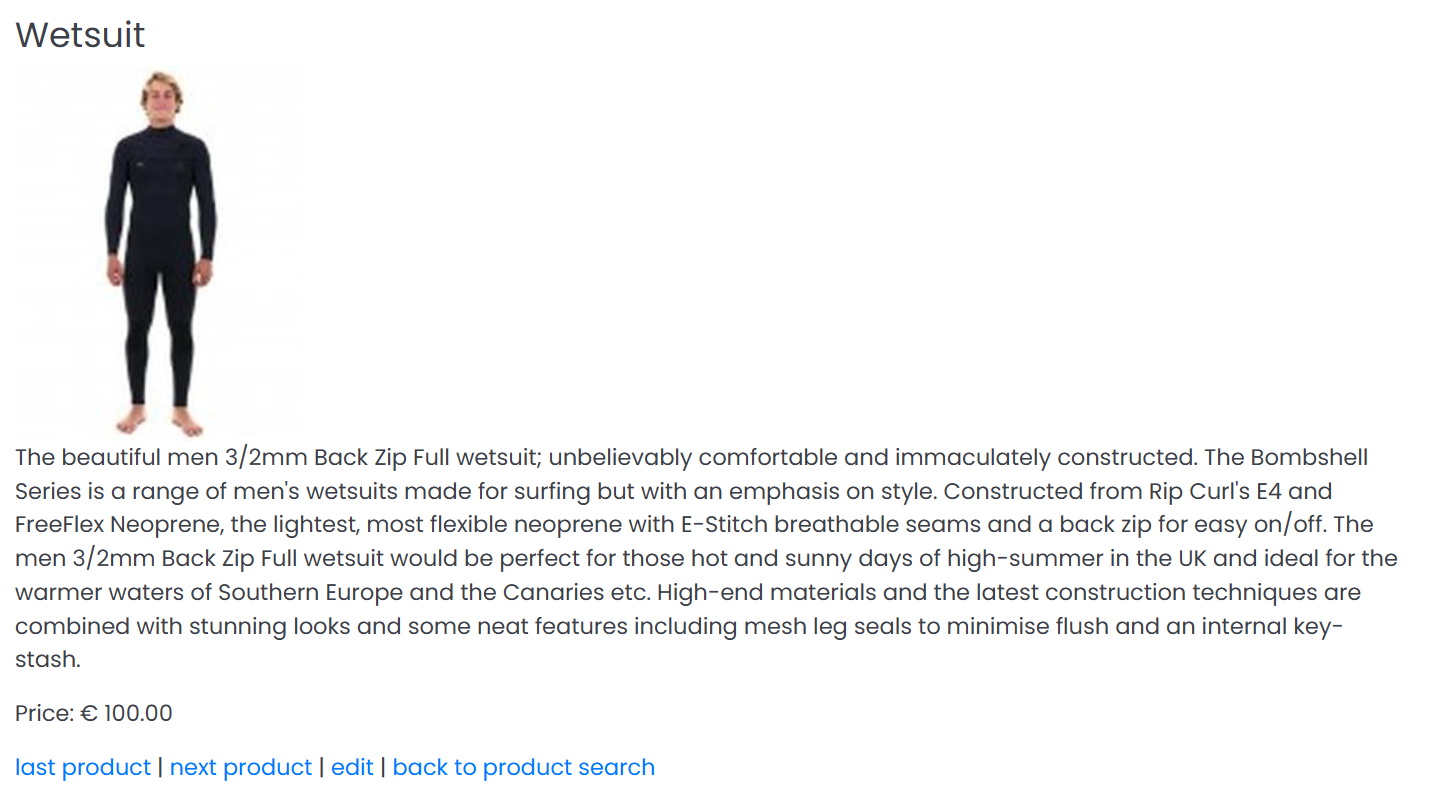 As we can now see, the "name" field of our class is shown as a header, the image is aligned to the right, and the description and price are put in two paragraphs, based on the html generated by the velocity script.